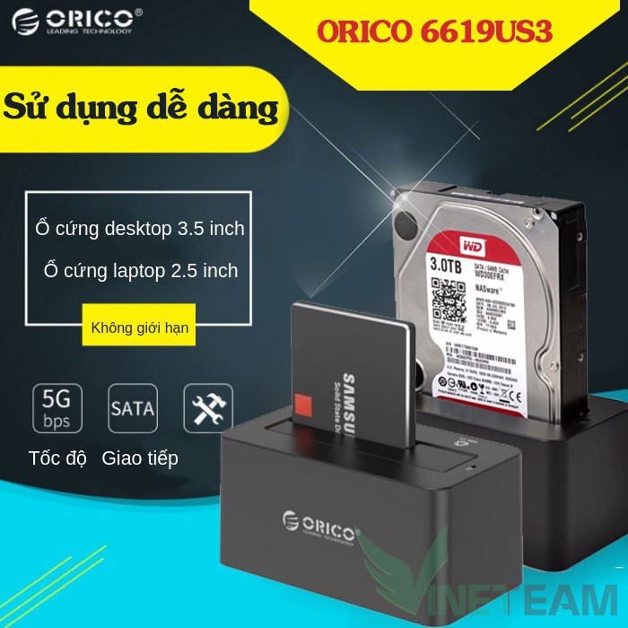 [Mã 55ELSALE1 giảm 7% đơn 300K] Thiết bị cắm nóng ổ cứng ORICO USB 3.0 SATA Hard Drive 6619us3 -DC673 free ship