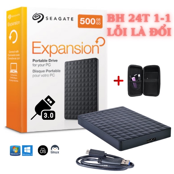Ổ Cứng Di Động 500GB 3.0 Seagate Expansion 2.5 Kèm bộ đôi đầu chuyển OTG MICRO USB-TYPE C -Bảo hành 24 tháng 1 đổi 1 free ship